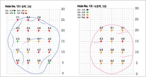 주의 : 좌, 우측 및 그린 뒤 OB