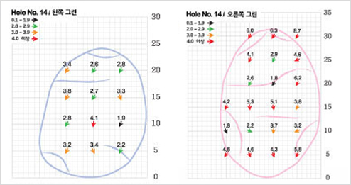 주의 : 그린에서 옆 라이를 주의해야 한다.