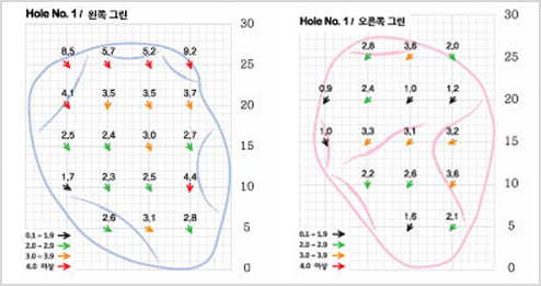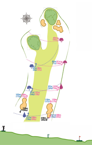 할 수 있으며, 그린은 핀 앞쪽을 공략하는 것이 유리하다.