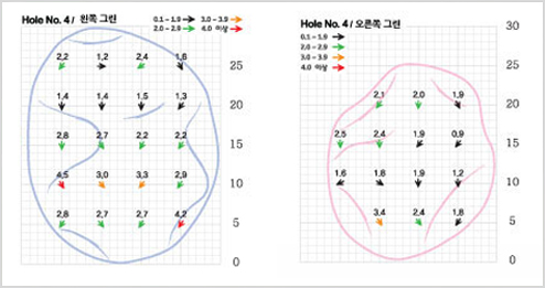 상당히 긴 파3홀이며 좌우에 OB가 있다. 그린 주변에 많은 벙커들이 있어 파를 하기 쉽지 않은 홀이다. 그린과 그린 사이 앞 중앙에 있는 나무를 겨냥하여 티샷 하는 것이 비교적 온 그린 확률이 높다. 왼쪽 그린사용 시 퍼팅 거리감에 유의해야 한다.