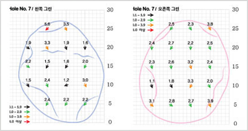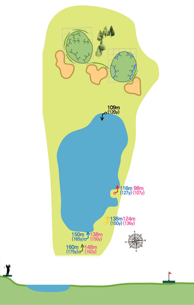 티잉 그라운드에서부터 그린 주변까지 대형 해저드가 있어 심리적으로 위축감을 주는 파 3홀로 왼쪽은 OB지역이다. 또한 그린 앞에 벙커들이 포진되어 가급적 반 클럽정도 여유 있게 잡고 공략하는 것이 안전하다. 왼쪽 그린 사용 시 퍼팅이 까다롭다.